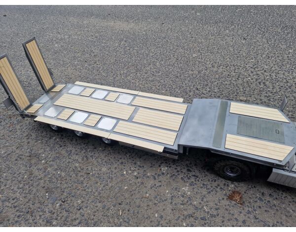 Die Kombination von Gummireifen und kugelgelagerten Alufelgen sorgt nicht nur für eine reibungslose Fahrt, sondern verleiht dem Tieflader auch ein ästhetisches Erscheinungsbild. Jede Komponente wird sorgfältig gefertigt und auf Langlebigkeit ausgelegt.