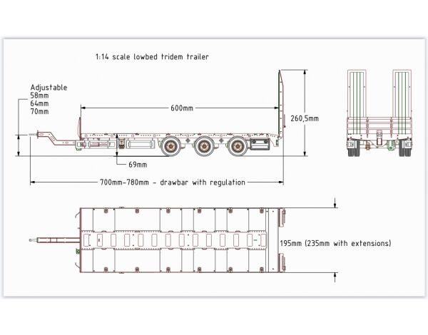 FM-SP-03-01-043 Schwerlast Auflieger mit Rampen 1/14 Trailer Anhänger