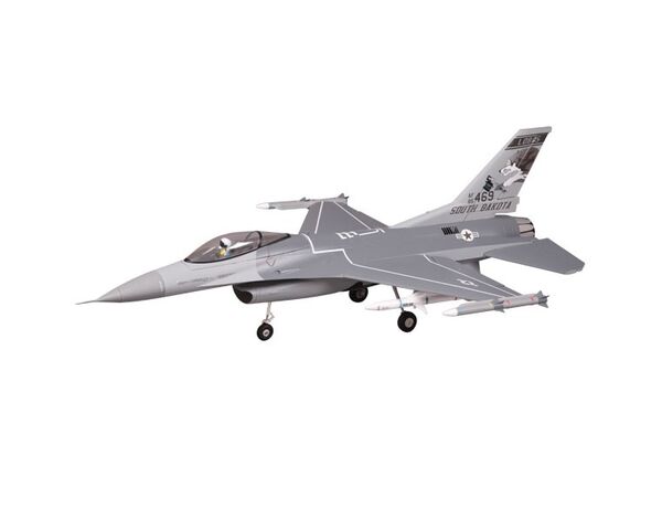 The FMS 70 mm F-16 adopts a scale USAF camouflage. With five different decals and pin-up sticker set ups, you build and customize you own plane.