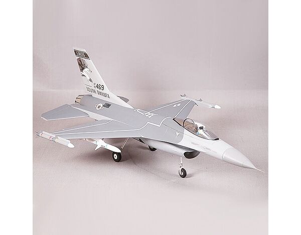The FMS 70 mm F-16 adopts a scale USAF camouflage. With five different decals and pin-up sticker set ups, you build and customize you own plane.
