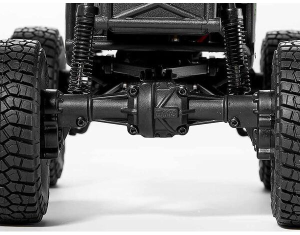 FCX24 is positioned as a high-performance crawler chassis. The car frame is made of high-strength nylon. Compared with the trapezoidal beam spliced by metal side beams and plastic trusses, the overall weight is lighter, and the strength is higher. The mid-mounted power assembly has a low center of gravity and integrates the 2-speed transmission, transfer case and 130 motor. The power is transmitted to the front and rear axles through the universal joint drive shaft. The axles are equipped with wheel side reducers, commonly known as "portal axle", which can increase the ground clearance of the differential tooth pack and improve the drive ability.