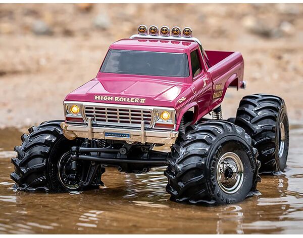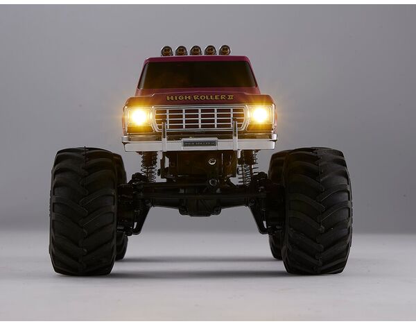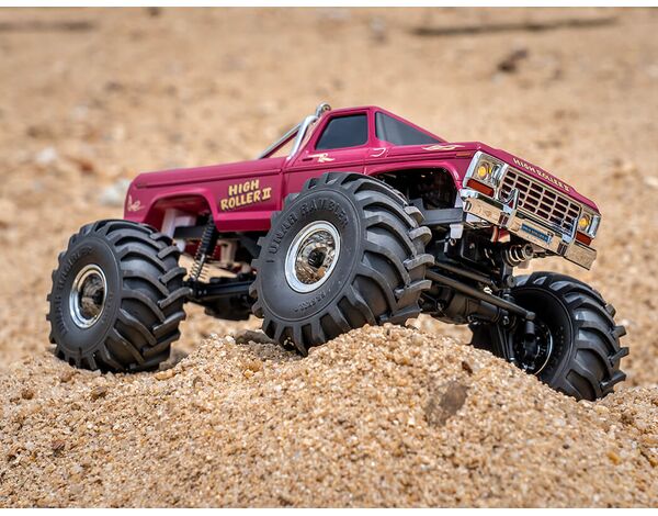 The SMASHER V2 adopts the FCX24 chassis. The huge hollow tires provide excellent shock absorption. The two-speed gearbox, controlled by the third channel, can not only provide strong torque, but also support high-speed off-road driving. The front and rear axles are equipped with planetary gear differentials by default, which is conducive to high-speed off-road driving, posture simulation and outstanding cornering performance. Meanwhile, straight axle parts without differentials are also provided for users to replace by themselves. When the straight axle parts are replaced, the differential function of the front and rear axles is lost but its climbing ability is completely released, and no matter whether it is rocks or mud, it can pass through powerfully. Of course, the hybrid solution of installing a straight axle on the rear axle and installing a differential on the front axle is also an option, which not only enables high-speed off-roading, but also retains a certain climbing ability.