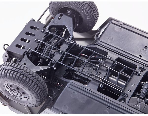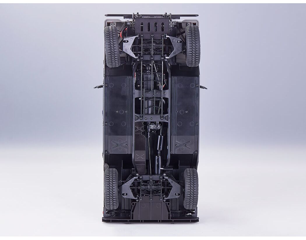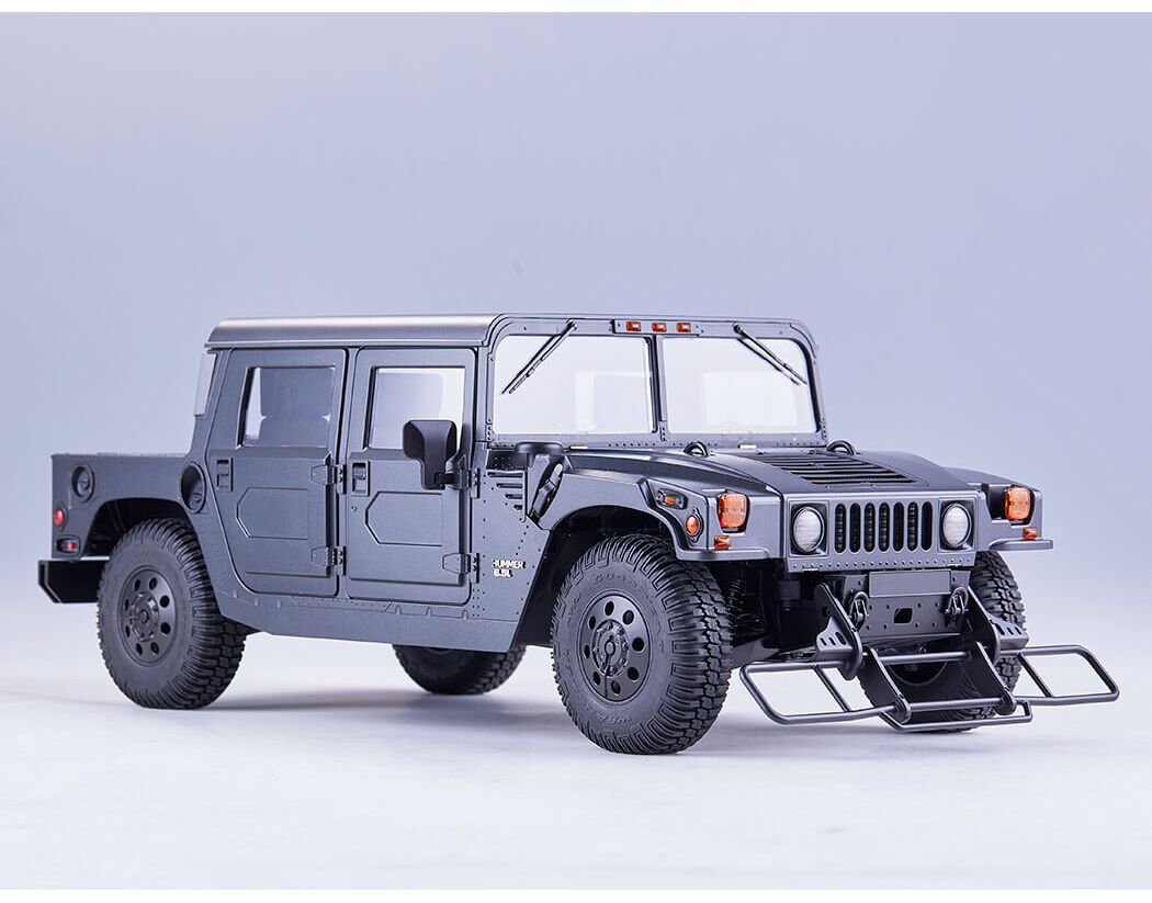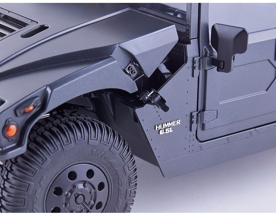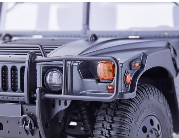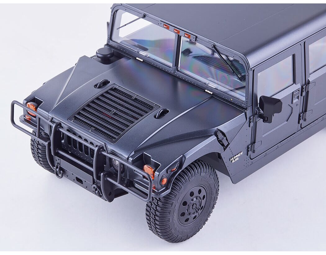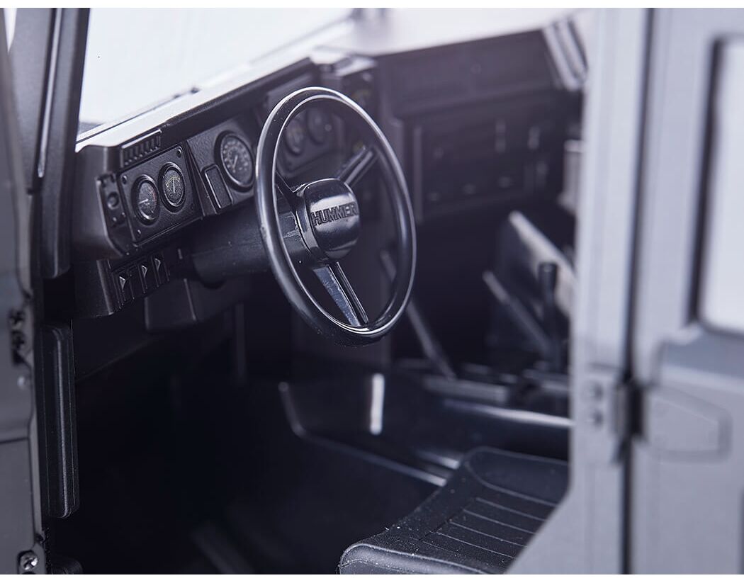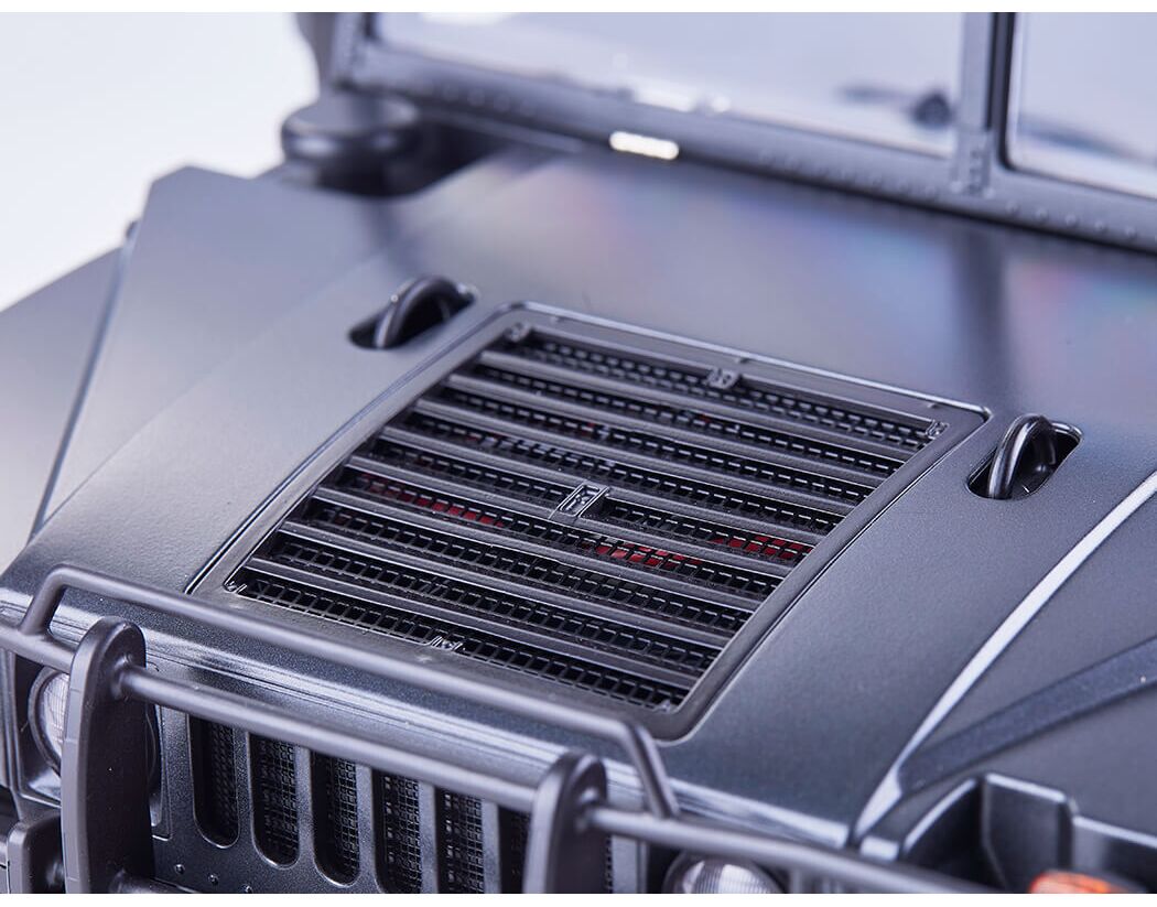 To satisfy the most critical of scale enthusiasts in both the hobby, and the scale RC industry, attention to detail of this model throughout was paramount, this even extended to the perfectly recreated interior. The HUMMER H1 uses a front mid-engine layout just like the real vehicle, and to facilitate maintenance, the hood is designed to be flipped forward. When flipping the hood up, the front bumper must also be flipped forward at the same time to avoid damage.