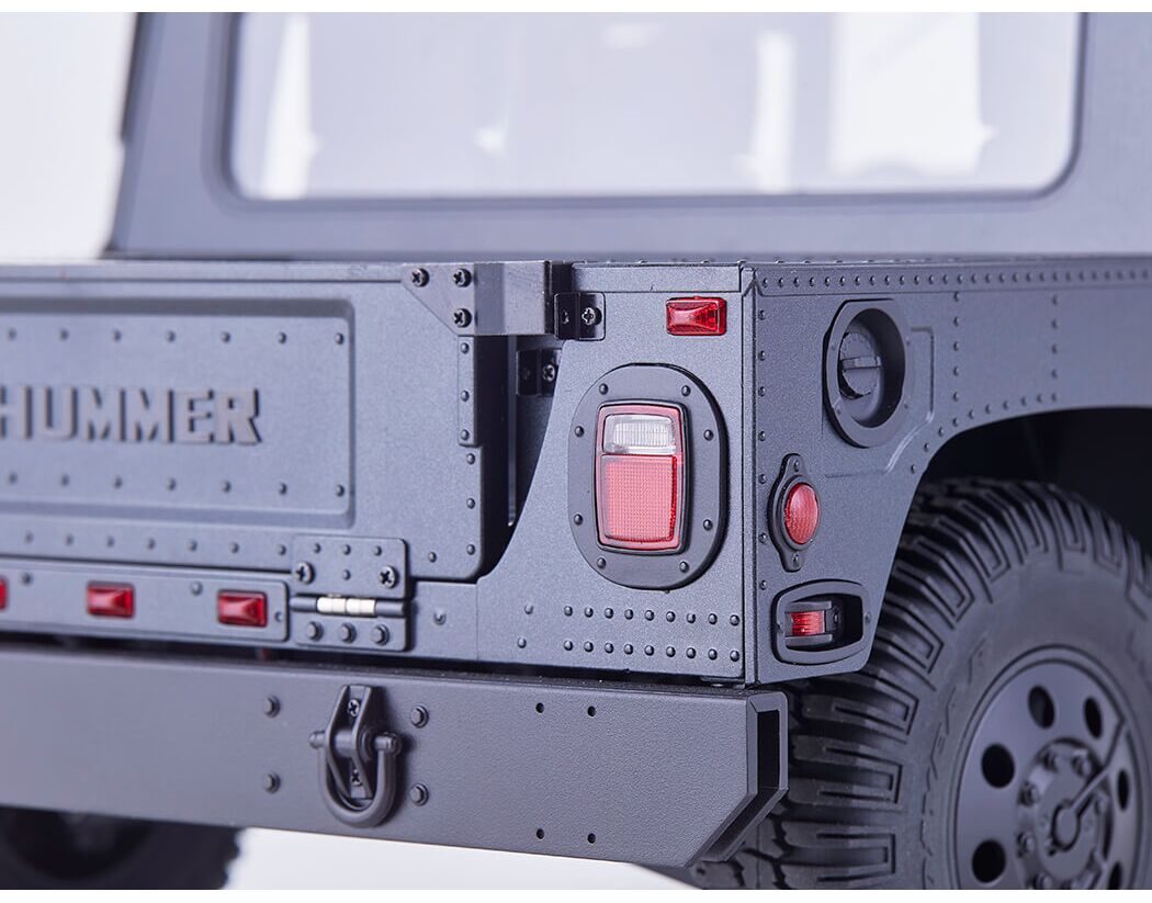 The rear wheel steering was originally an upgrade reserved for the planned follow-up model HUMMER EV. We have included it as an additional hidden function of the HUMMER H1, so you now have a total of 4 steering modes! The extra mode, which can reduce the steering radius by 50%, is ideal in confined spaces and is sure to further improve the driving pleasure of this beautifully recreated scale vehicle.