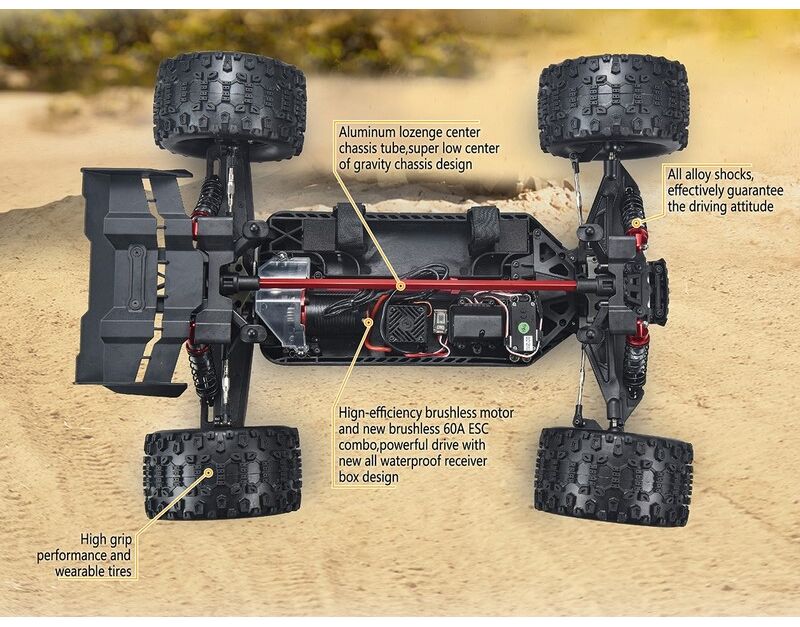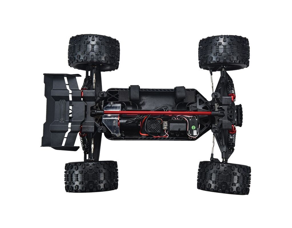 Das verstärkte Nylon-Chassis mit 6061-T6-Aluminium-Unterfahrschutzplatten vorne und hinten steckt harte Landungen locker weg. Werksseitig montierte, ölgefüllte Aluminium-Stoßdämpfer, verstärkte Querlenker und griffige Offroad-Reifen sorgen für Kontrolle und Traktion. CVD-Antriebswellen, ein wasserdichtes 6kg-Lenkservo und eine ultrahelle LED-Lichtleiste runden das Paket für echte Abenteuer ab – auch bei Nässe und in der Dämmerung.
