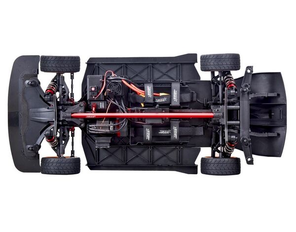 Das robuste 3mm Aluminium-Chassis mit CNC-gefrästen 6061T6-Dämpferbrücken und Mittelstrebe sorgt für maximale Stabilität und Langlebigkeit. Die Pivot-Ball-Radaufhängung, verstärkte CVD-Antriebswellen und großvolumige ölgefüllte Aluminium-Stoßdämpfer sorgen für präzises Fahrverhalten – ideal für Highspeed-Straßenfahrten und Drifts. Ein integriertes mechanisches Bremssystem, Lüfter, 2,4GHz-Fernsteuerung mit Gyro, wasserdichtes 18kg Lenkservo mit Metallgetriebe sowie ein vollwertiges LED-Lichtsystem runden das Paket ab. Einfach 4S oder 6S LiPo-Akku mit XT90-Anschluss anschließen – und los geht’s!