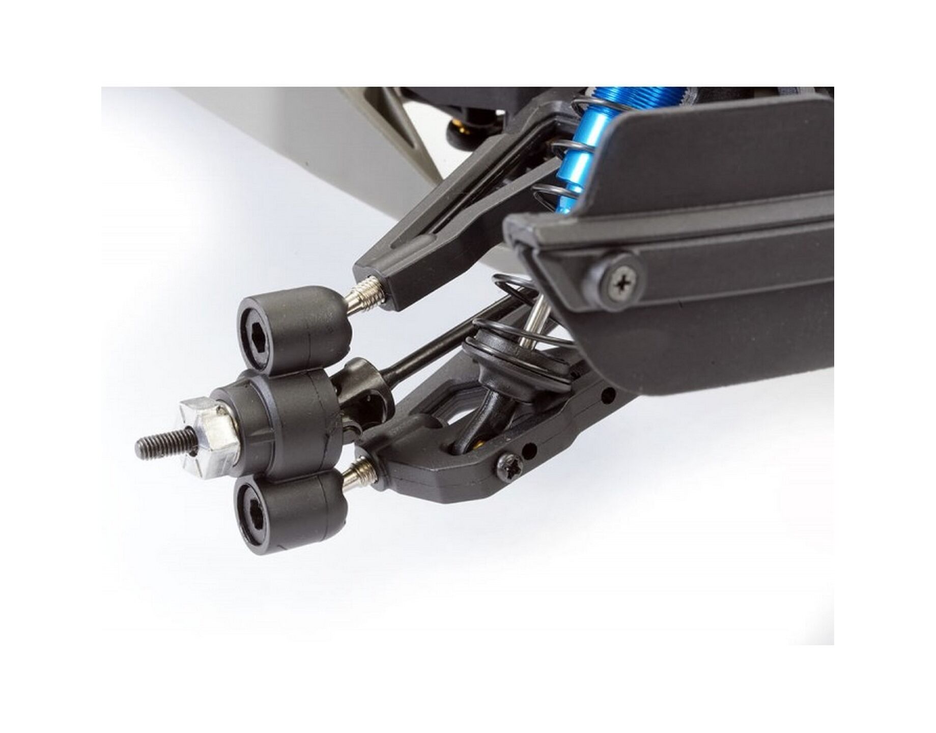 Pivot ball suspension with adjustable turnbuckles, provides tunabilty should you wish and front CVA driveshafts and metal geared differentials front and rear provide reliable service.