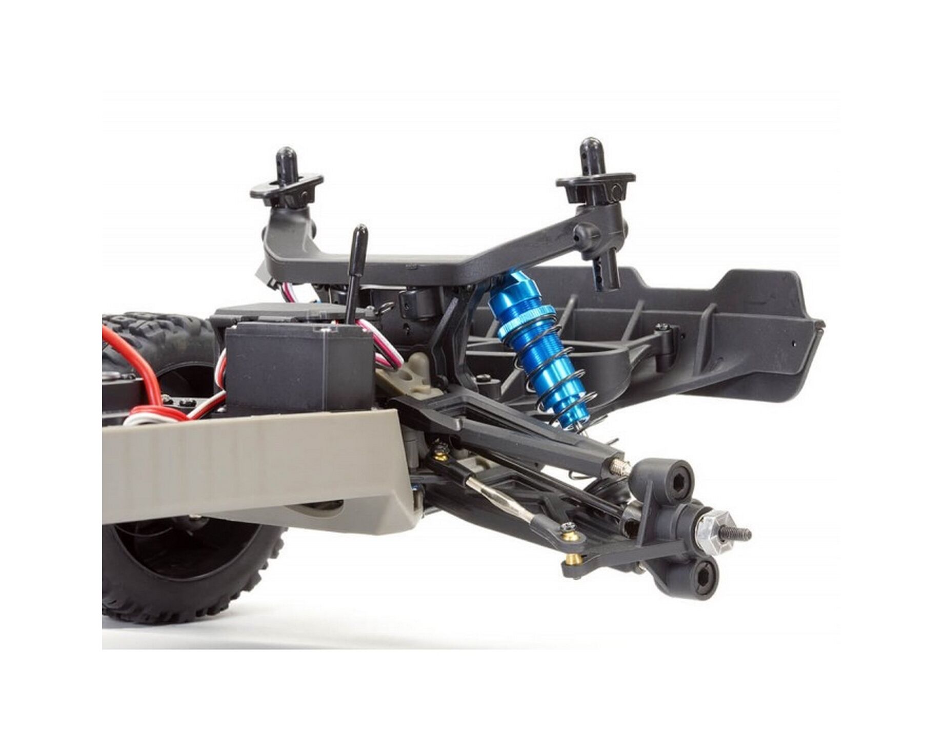 Trophy trucks provide the perfect blend of off-road capabilities with drivability for brilliant all-round r/c ex-perience. The FTX Apache a perfect example of this utilising a high ground clearance moulded tub chassis, aluminium skid plates and moulded scale front and rear bumpers, coupled with long throw suspension, marshalled by blue anodised aluminium oil filled shocks on each corner.