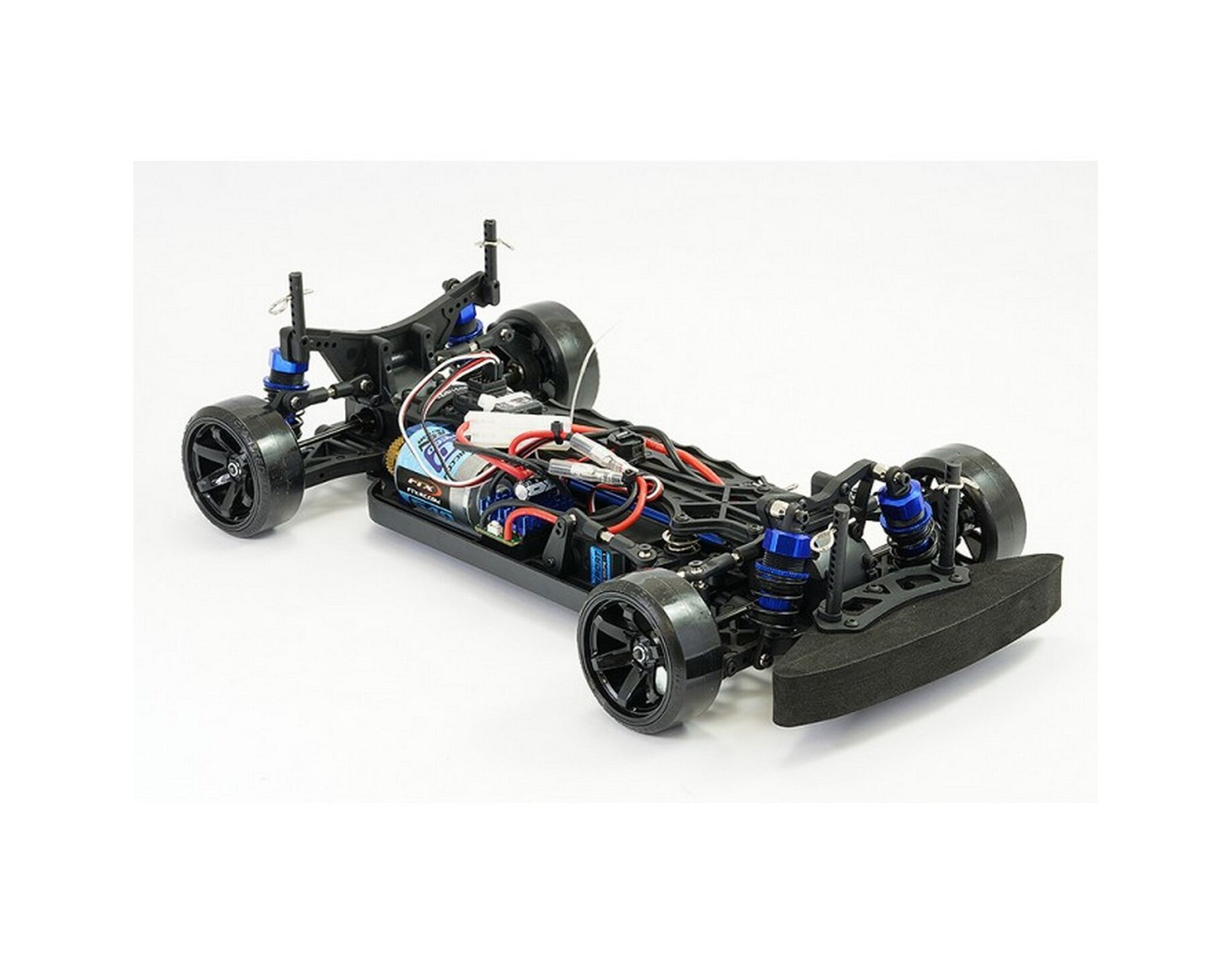 Featuring a 4wd shaft driven design with front and rear metal-geared differentials, the Banzai is 99% complete from the box. Blue anodized aluminium components add a little style to the chassis along with the functionality of oil filled adjustable shock absorbers, front CVA universal driveshafts, ball bearings, adjustable suspension turnbuckles for tuning and a centre drive slipper to protect the transmission.