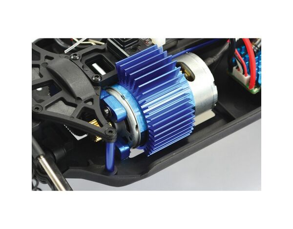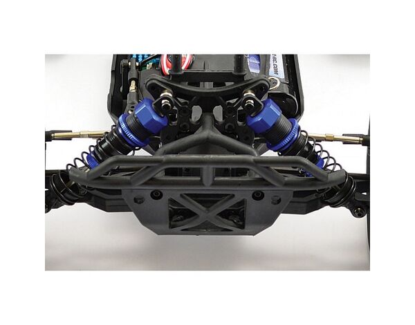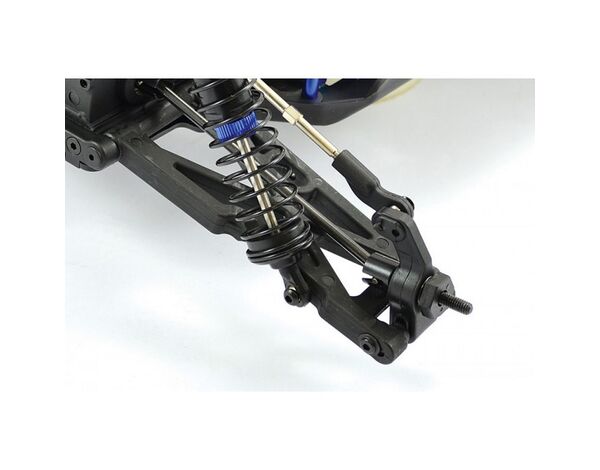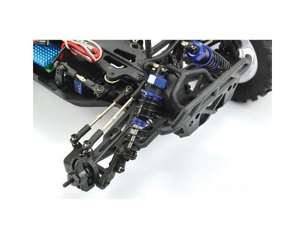 The 4wd shaft drivetrain features metal diff gears and front universal driveshafts, while an integrated slipper helps protect the drivetrain from possible damage under power. With adjustable turnbuckles all round and large bore oil filled shock absorbers the Bugsta can be tuned to suit you or the surface.