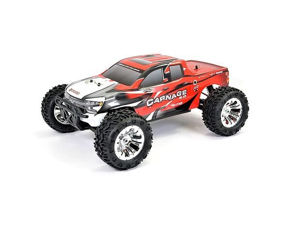 Since it’s release over six years ago the FTX Carnage has become a huge favourite with beginners looking for an affordable entry into the world of R/C. Well we thought it was about time this fan favorite had a face lift with the Carnage 2.0. Two new bodyshell schemes and colours, chrome plated wheels, Etronix 3ch radio and a new 60amp rated brushed esc means the Carnage legacy is set to continue for a long time to come!