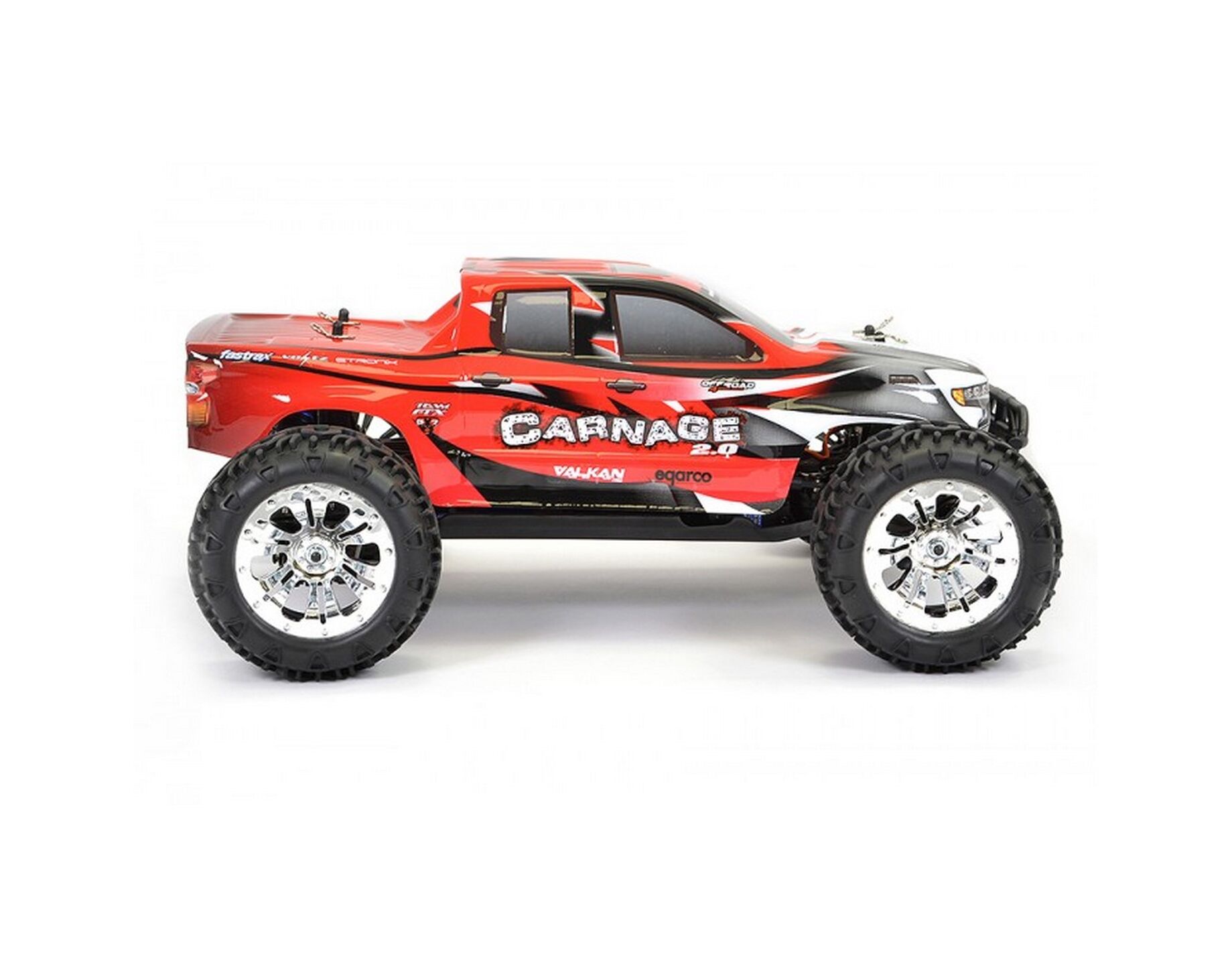 Since it’s release over six years ago the FTX Carnage has become a huge favourite with beginners looking for an affordable entry into the world of R/C. Well we thought it was about time this fan favorite had a face lift with the Carnage 2.0. Two new bodyshell schemes and colours, chrome plated wheels, Etronix 3ch radio and a new 60amp rated brushed esc means the Carnage legacy is set to continue for a long time to come!