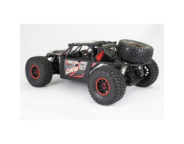 The DR8 is topped off with a classic, desert buggy inspired moulded tubular roll cage frame with printed lexan panels and spare wheel. A detailed interior driver cockpit, painted fire extinguishers are all rounded off with super bright front and rear LED light bars.