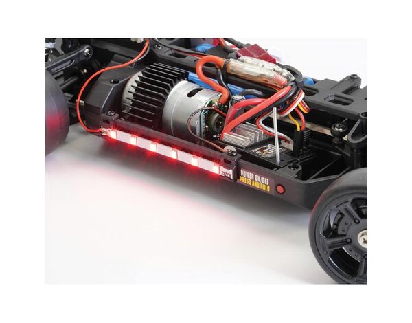 A fully proportional throttle and steering servo provide smooth and accurate control, while a shaft driven 4wd drivetrain, front and rear geared differentials, all supported by precision ball bearings handle the power from the 390 sized brushed motor and 2S 7.4V Li-Ion battery pack.