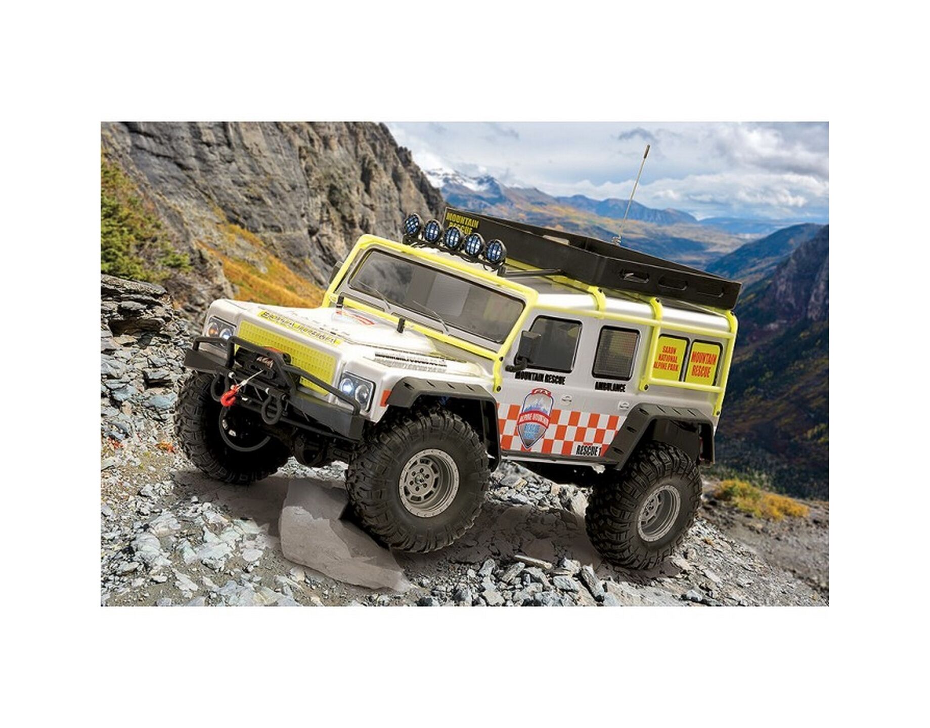 Die neue Mountain Rescue Edition des Kanyon von FTX spiegelt die Vorliebe der Rettungsteams für alles wider und bietet einige neue Funktionen gegenüber dem Standard-Kanyon. Ein umschaltbares 2-Gang-Getriebe ermöglicht hohe und niedrige Geschwindigkeiten für die Navigation in unebenem und ebenem Gelände. Eine an der Frontstoßstange montierte Seilwinde kann vom Sender aus bedient werden, um Sie aus der Gefahrenzone zu ziehen.