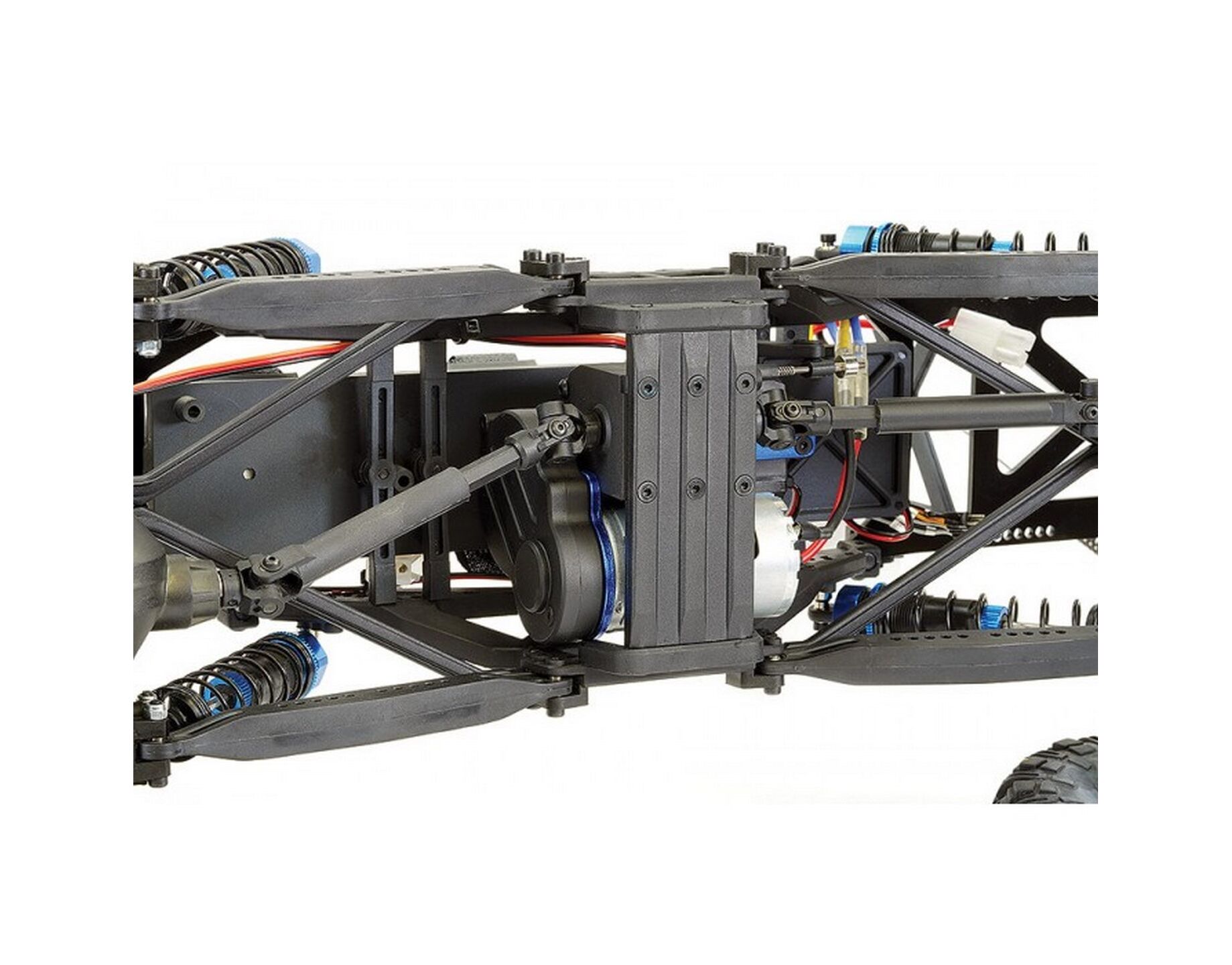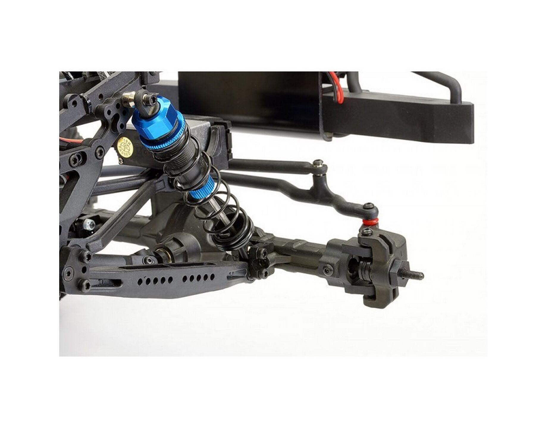 Ein 60T-Bürstenmotor sorgt für das nötige Drehmoment, während die gleichen Metall-Abtriebszahnräder, gesperrten Achsen und die Mehrlenkeraufhängung den nötigen Antrieb liefern, um die meisten Hindernisse zu überwinden.