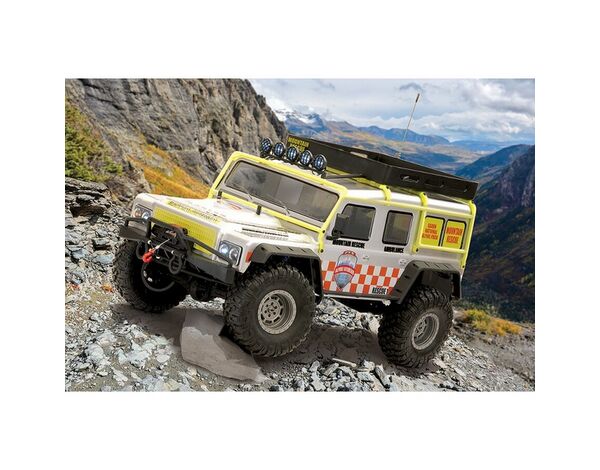 Die neue Mountain Rescue Edition des Kanyon von FTX spiegelt die Vorliebe der Rettungsteams für alles wider und bietet einige neue Funktionen gegenüber dem Standard-Kanyon. Ein umschaltbares 2-Gang-Getriebe ermöglicht hohe und niedrige Geschwindigkeiten für die Navigation in unebenem und ebenem Gelände. Eine an der Frontstoßstange montierte Seilwinde kann vom Sender aus bedient werden, um Sie aus der Gefahrenzone zu ziehen.