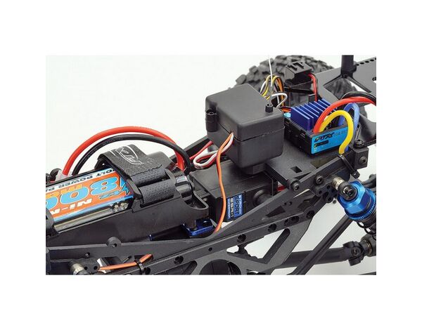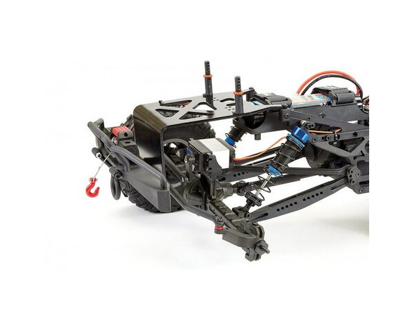 Ein 60T-Bürstenmotor sorgt für das nötige Drehmoment, während die gleichen Metall-Abtriebszahnräder, gesperrten Achsen und die Mehrlenkeraufhängung den nötigen Antrieb liefern, um die meisten Hindernisse zu überwinden.