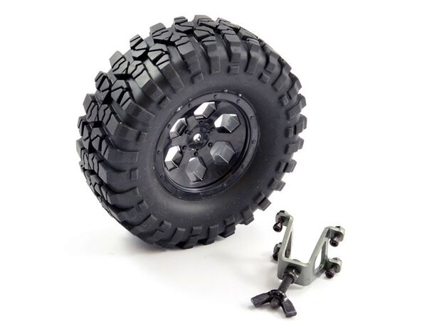 FTX OUTBACK SPARE TYRE MOUNT & TYRE/6 HEX WHEEL BLACK