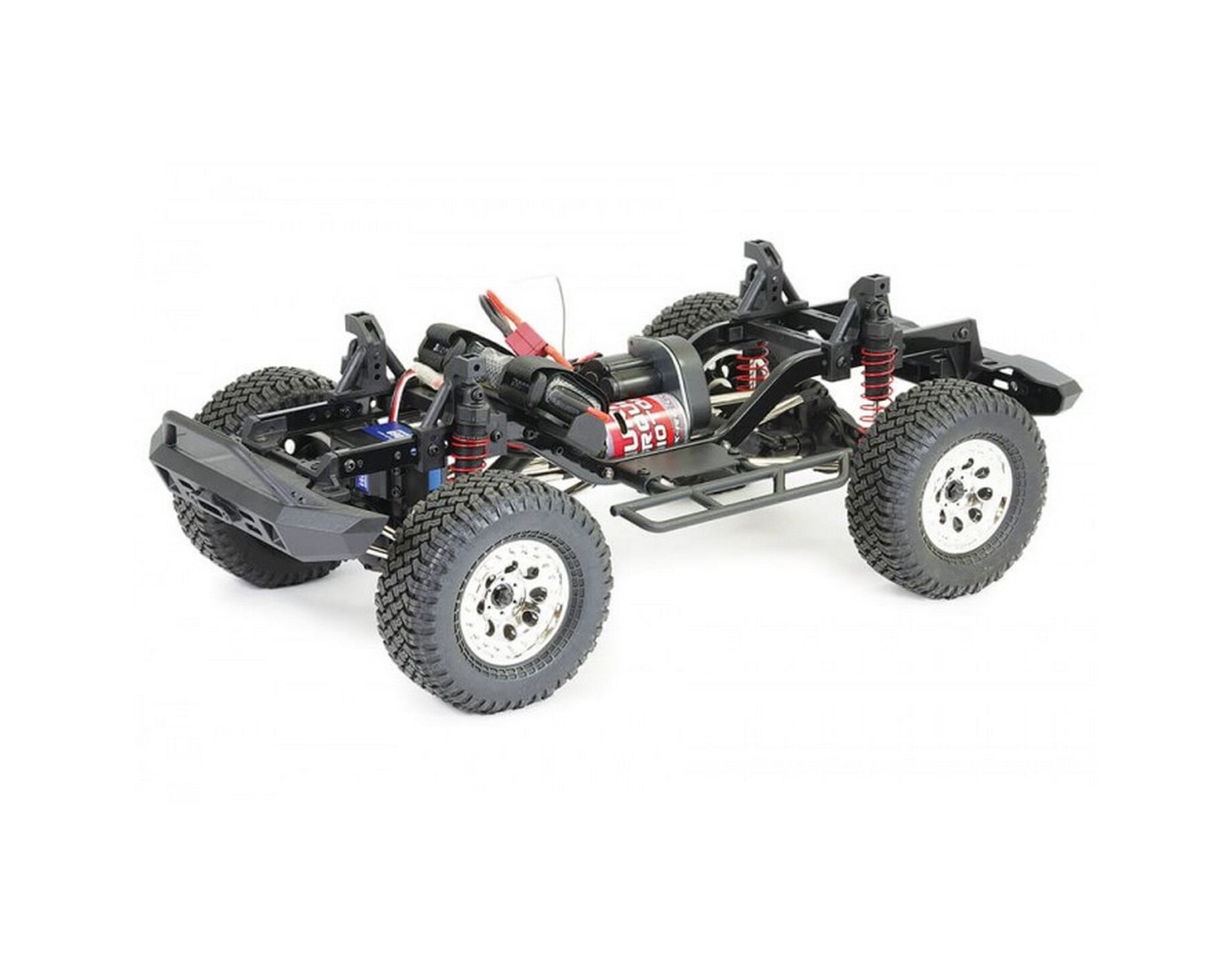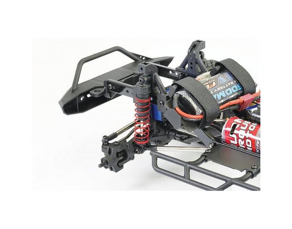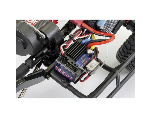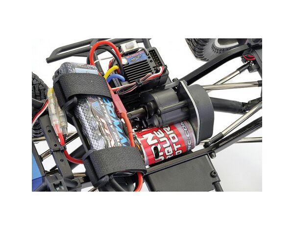 A powerful Etronix 6kg steering servo, along with an improved 45° steering angle, paired with adjustable front caster angle provides exceptional maneuverability in tight spaces. The 1500mAh battery has been moved forward for improved stability, while the oill filled shock absorbers now feature threaded bodies for fine tuning adjustment.