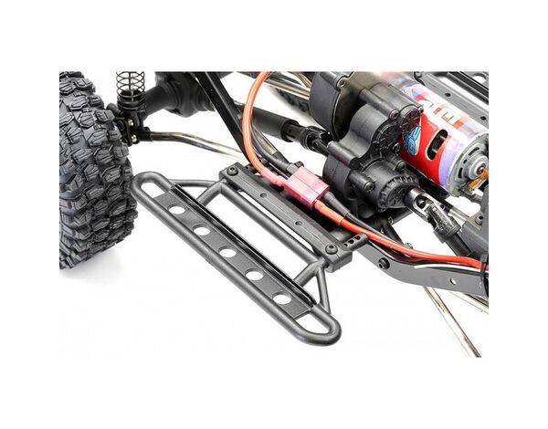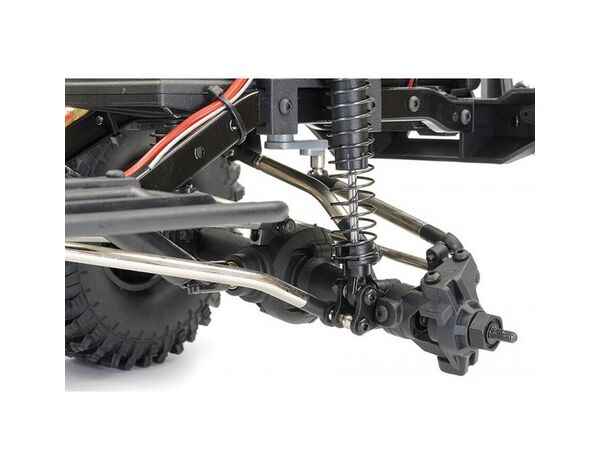 An Etronix 15kg metal geared servo and horn now take on the heavy steering. 6mm steel links feature increased bend angle for better clearance over rocks and new aluminium axle link mounting point addsstrength.