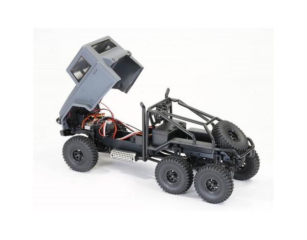 Carry a spare battery inside the functional toolbox for even longer runs. The clipless, hinged matt finished cab body can be lifted for quick and direct access for battery changes. Chrome effect side exhaust covers link up with the moulded roll cage for a cool scale finish, while front and