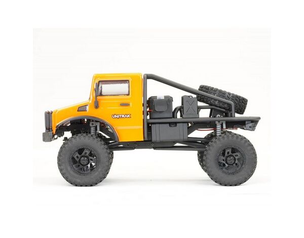 Choose from three super detailed 1.2mm thick painted lexan bodies; Rock Van, Texan pick up or Unitrak utility vehicle, all featuring moulded scale accessories and LED lights.