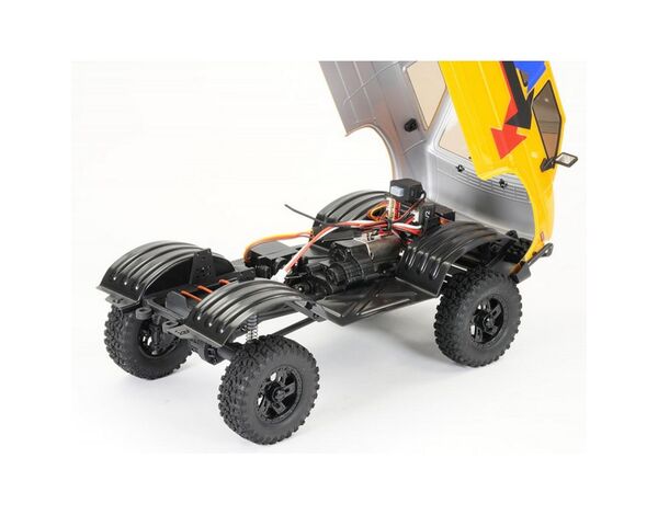 Choose from three super detailed 1.2mm thick painted lexan bodies; Rock Van, Texan pick up or Unitrak utility vehicle, all featuring moulded scale accessories and LED lights.