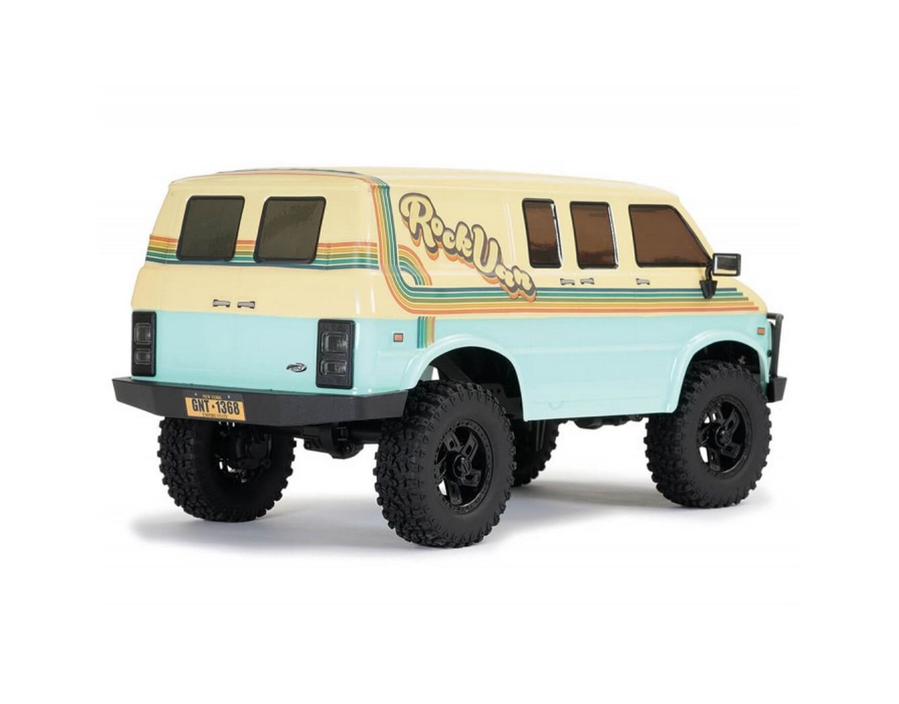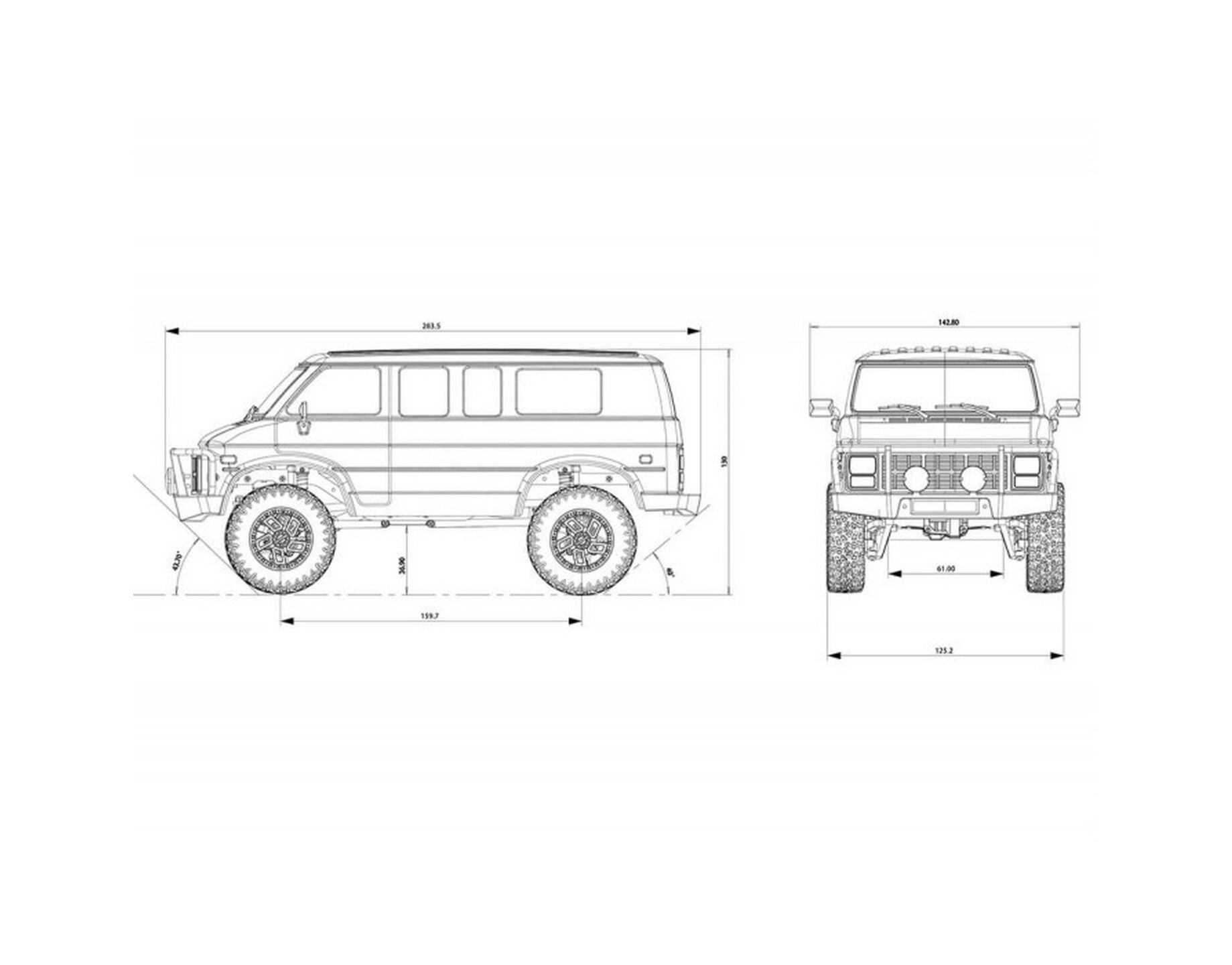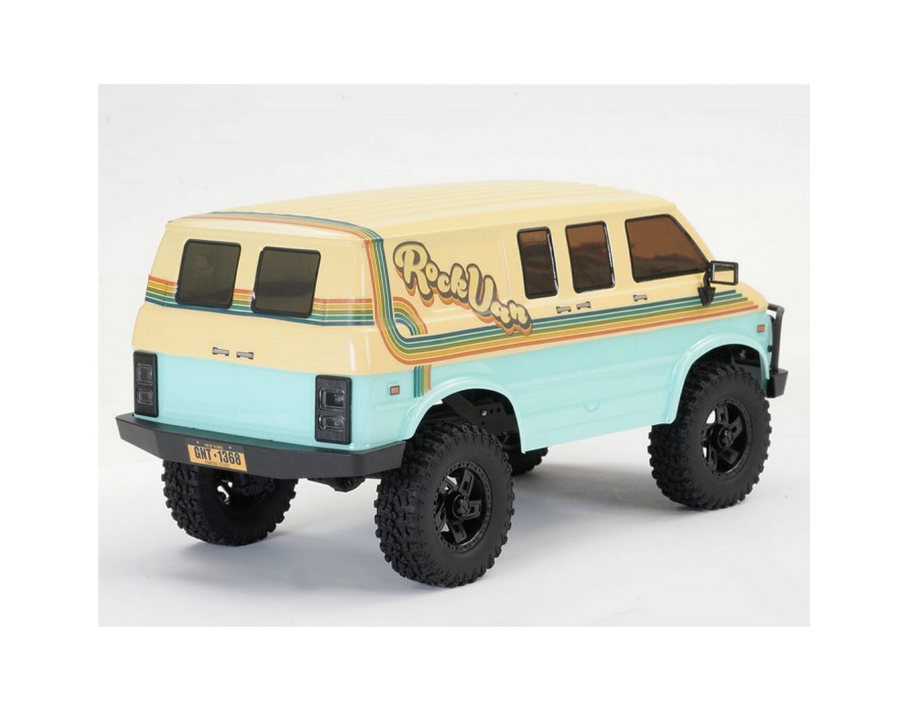 On the outside, scale finishing such as moulded bumpers, full function LED light system mounted in moulded light buckets with lenses, wipers, mirrors, bead lock wheels and hidden body mounting make the Rock Van a real head turner. Furthermore, optional accessories such as inner body fenders, brass wheel weights and oil filled shock absorbers will take your rig to a whole new level of scale performance.