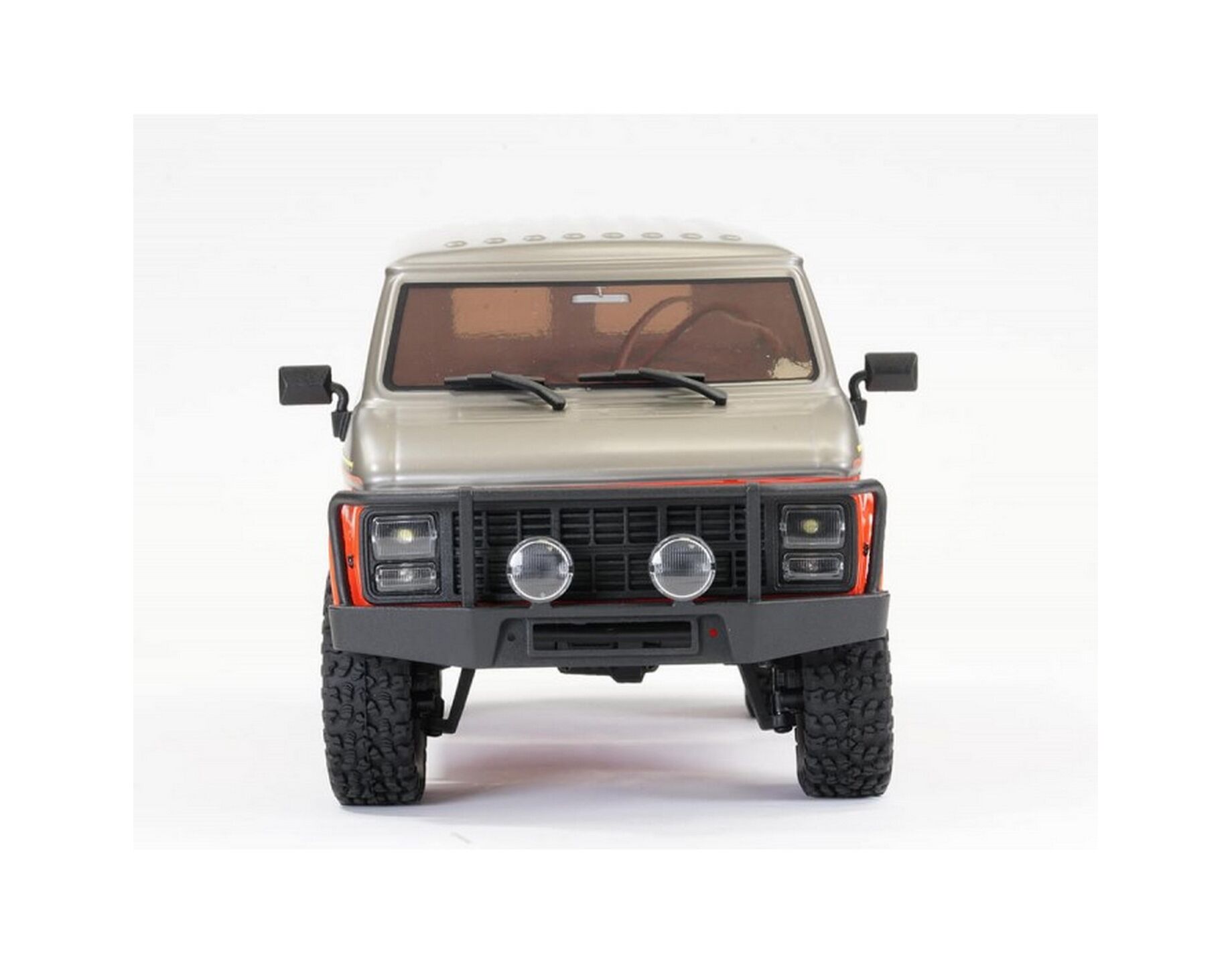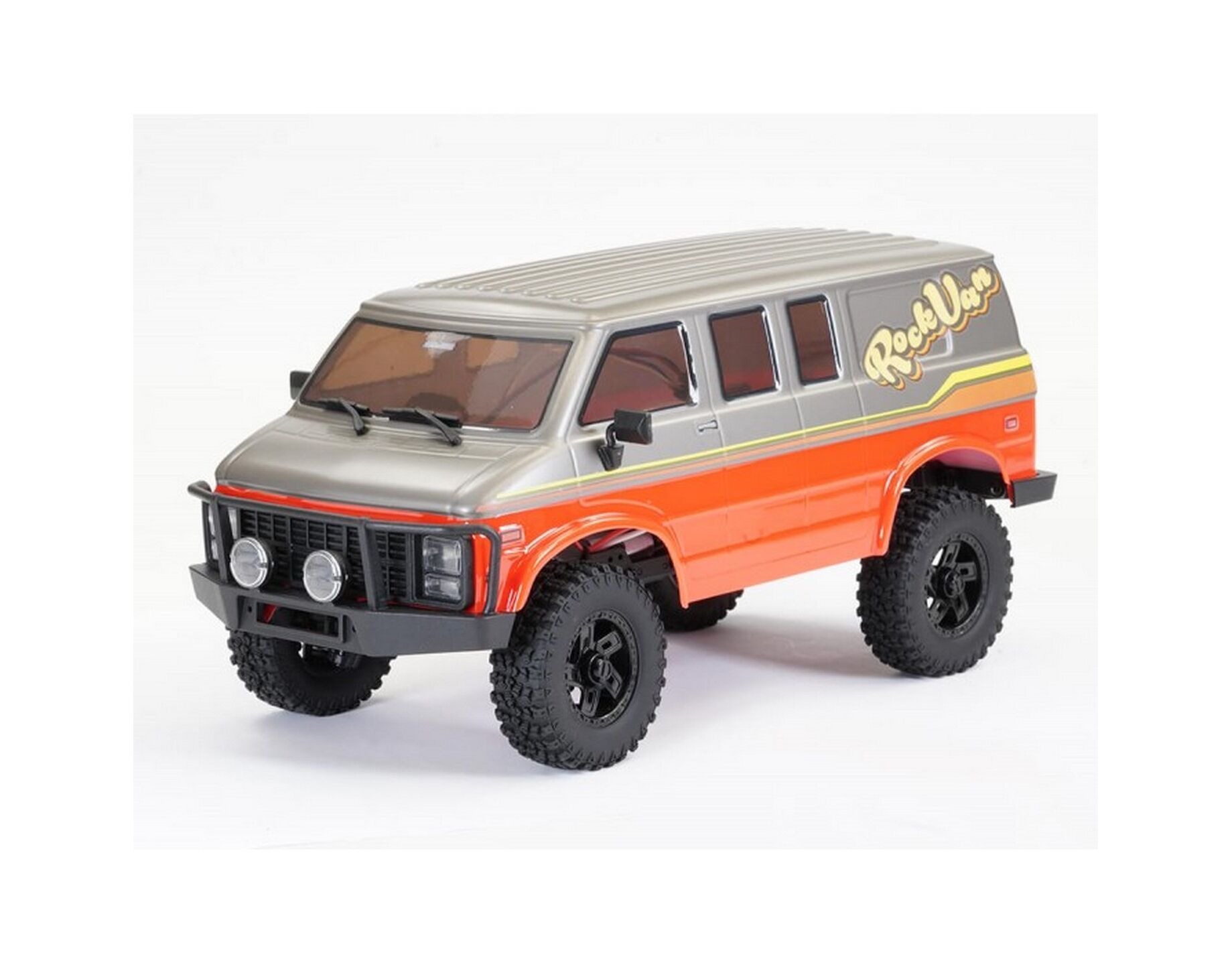 On the outside, scale finishing such as moulded bumpers, full function LED light system mounted in moulded light buckets with lenses, wipers, mirrors, bead lock wheels and hidden body mounting make the Rock Van a real head turner. Furthermore, optional accessories such as inner body fenders, brass wheel weights and oil filled shock absorbers will take your rig to a whole new level of scale performance.