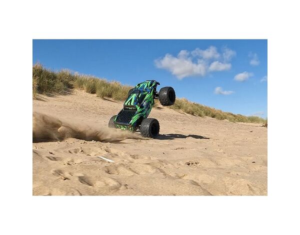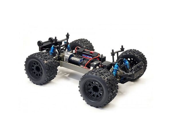 Powered by a Hobbywing 50A brushless speed control and 2500kv motor, coupled with the included Voltz 3S 3500mAh Lipo battery the RamRaider can reach impressive top speeds for its size, while still being very drivable on most surfaces. The rear mounted wheelie bar works to provide a sta-ble footing for those heavy accelerations when you light up the rear tyres.