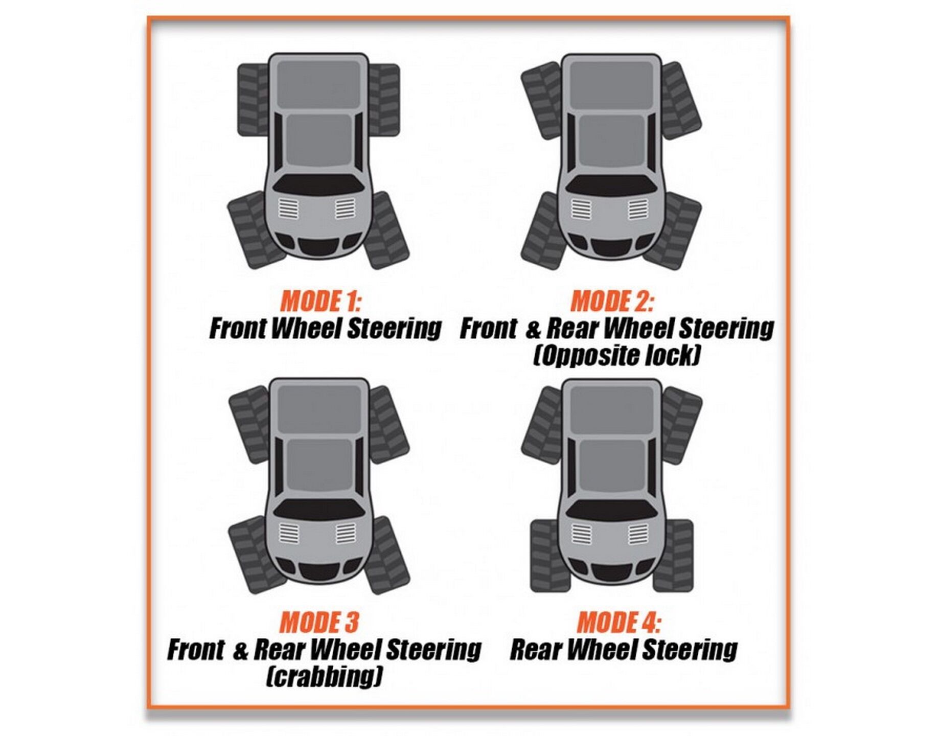 The Ravine is ready navigate the tightest and steepest terrain you can throw at it with it’s multi M.O.A. axle design and multiple steering modes.