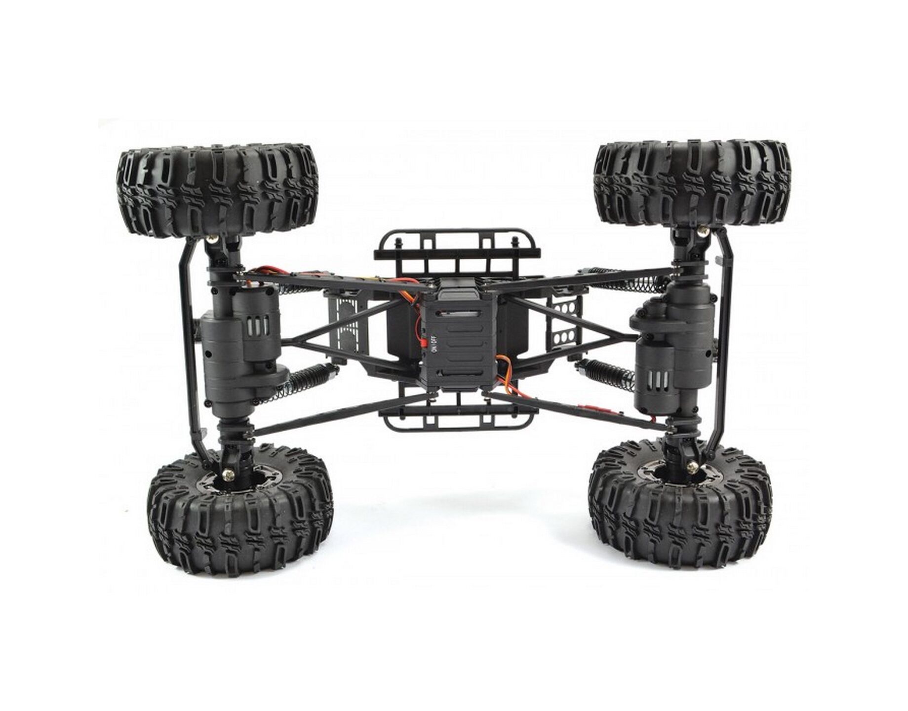 Multi-link suspension matched with oil filled shocks provides huge articulation for you carve your way through the rocks. Supersoft, heavy lugged 2.2” tyres mounted on beadlock wheels pro-vide the traction and bite for you to apply the power.