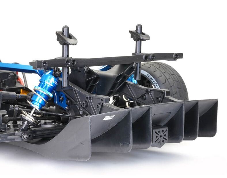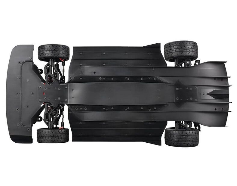 Unter der Haube sind ein Hobbywing 150-Ampere-Geschwindigkeitsregler und ein 4-poliger bürstenloser 2000-kV-4274-Motor bereit, der mit einem 4S- oder 6S-LiPo-Akku Ihrer Wahl verbunden werden kann, um einige gummibrennende Straßenfahrten zu ermöglichen. Bei Geschwindigkeit ist Kontrolle gefragt, und mit kanalisierten Chassis-Seitenschutzvorrichtungen und einem Heckdiffusor für Bodeneffekte, gepaart mit Fastrax F-Zero-Reifen mit hoher Traktion, die innen mit einem Gürtel versehen sind, um eine Ausdehnung unter Krafteinwirkung zu verhindern, und einer breiteren hinteren Aufstandsfläche ist Stabilität bei hohen Geschwindigkeiten gewährleistet.