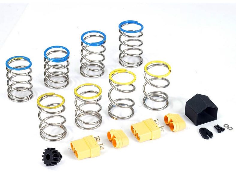 Ein robuster 3-Differential-Antriebsstrang mit Kardanantrieb, robusten Stahlzahnrädern und Spiralzahn-Diff-Zahnrädern sowie universellen CVD-Antriebswellen vorne steht für die Kraftübertragung bereit. Bei diesen Geschwindigkeiten ist es unmöglich, alles abzudecken, aber ein 3 mm dickes Aluminium-Chassis, CNC 6061 T6-gefräste Aluminium-Front- und Hecktürme, eine Aluminium-Chassisstrebe von vorne nach hinten und ein vorderer Schaumstoffstoßfänger sind allesamt darauf ausgelegt, Schäden im Falle eines Ausfalls oder Sturzes zu minimieren Auswirkungen.
