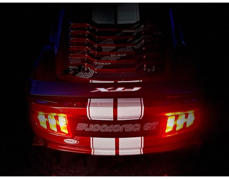 Der Superforza GT modelliert eine aggressiv gestaltete, maßstabsgetreue Karosserie mit maßstabsgetreuen Zubehörteilen wie Frontgrill, Seitenspiegeln, Heckspoiler, Scheinwerfer- und Rücklichtgläsern für ein realistisches LED-Beleuchtungssystem und übergroßen Hinterreifen und ist bereit, seinem Anspruch als Supersportwagen gerecht zu werden.