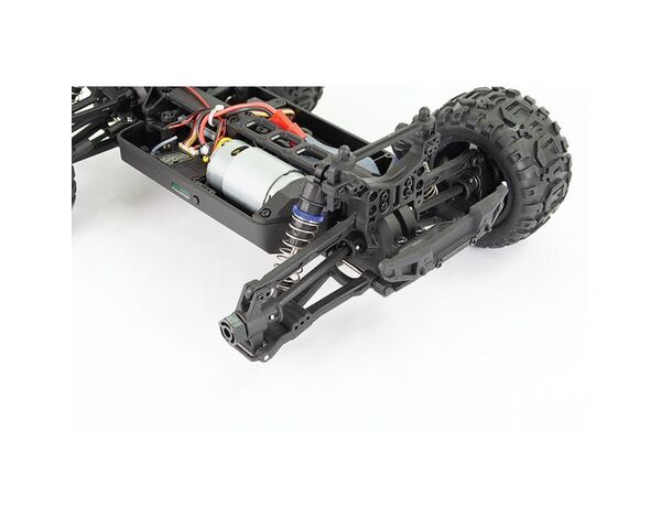 Get ready for some big r/c off road action from the pocket rocket Tracer Truck from FTX. The perfect entry into a world of r/c fun, the Tracer features coil sprung shock absorbers with moultiple mounting points, double wishbone suspension and front universal driveshafts for smooth suspension movement while steering through the ruff stuff. Shaft driven 4WD and with geared differentials front and rear provide traction in all conditions.