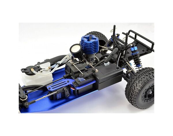 Factory assembled with waterproof servos and a 2.4ghz radio system, the Zorro’s shaft 4wd drivetrain, along with metal geared front and rear differentials is ready to handle the excitement that only a nitro engine can deliver.