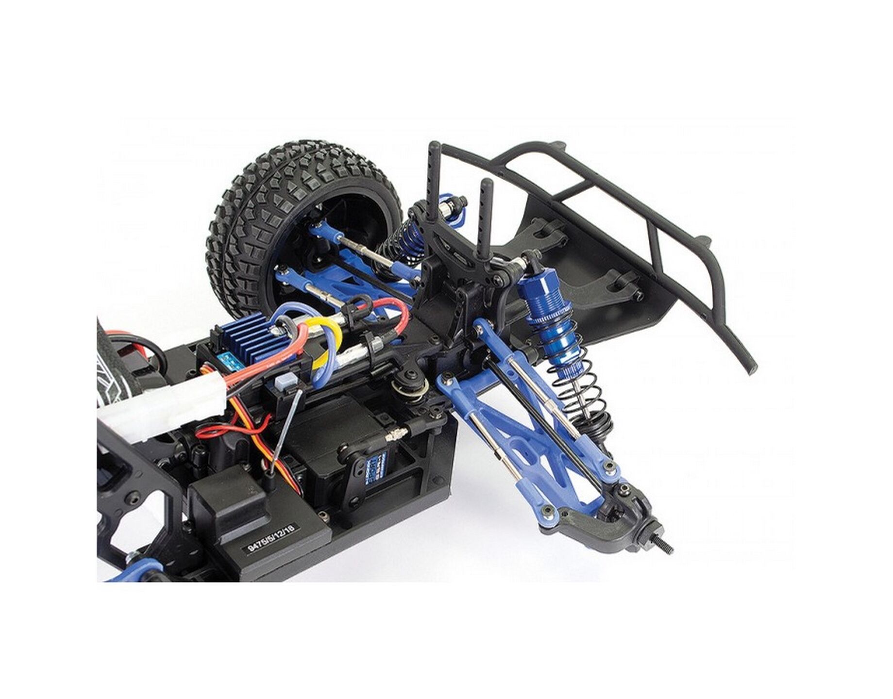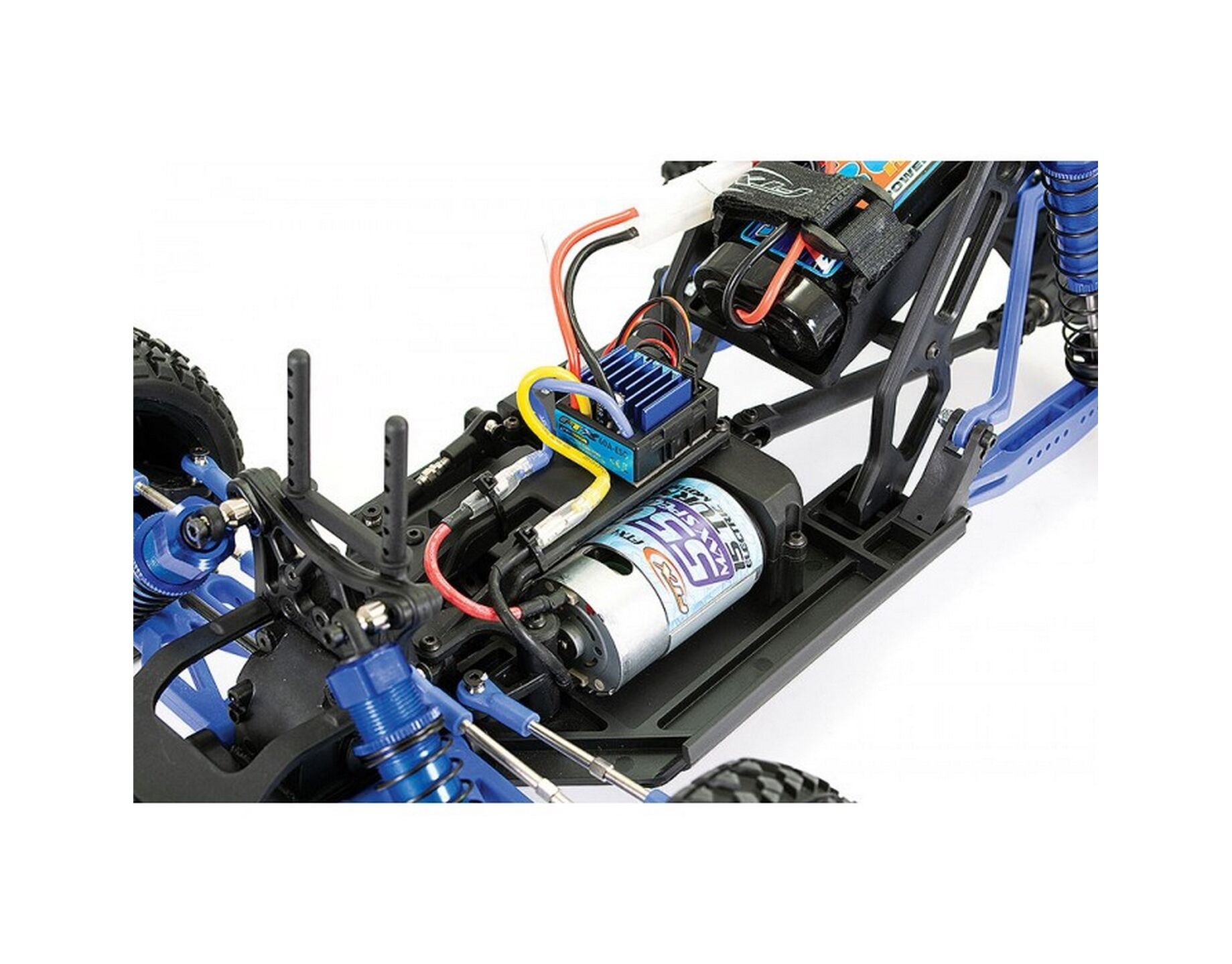 This full featured brushed truck is a perfect entry in to 1/10th scale r/c and represents great value with a 60A speed control, Etronix radio sys-tem and Voltz 1800mAh battery pack. Not to mention the blue anodised aluminium shock absorbers front and rear, metal differential and crown gears and sealed 4wd shaft drive tranmission.