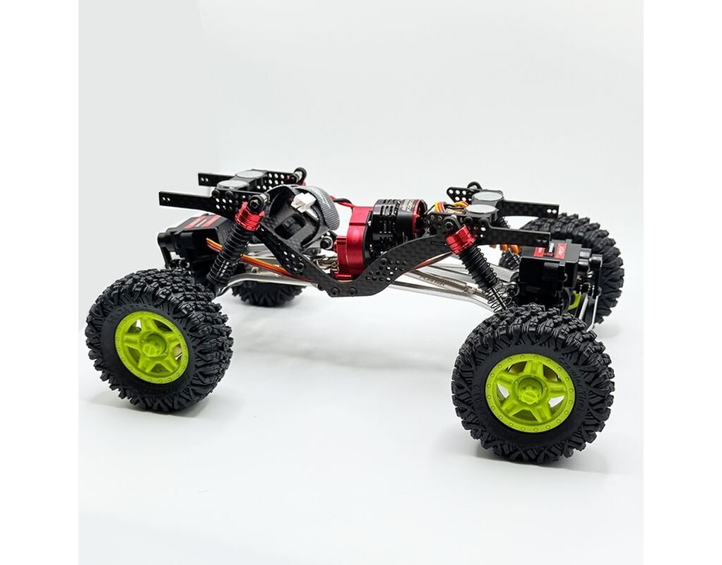 Ausgestattet mit einem vollständig unabhängigen 4-Rad-Lenksystem ermöglicht dieser Crawler die Steuerung der Vorder- und Hinterräder direkt vom Sender aus und bietet so unübertroffene Beweglichkeit und Geländeanpassungsfähigkeit. Mit nur einem Schalter an Ihrem Sender können Sie zwischen Frontlenkung, Hecklenkung, seitlichem Krabbeln oder dem vollen 4WS-Modus wechseln, um technische Trails absolut zu beherrschen.