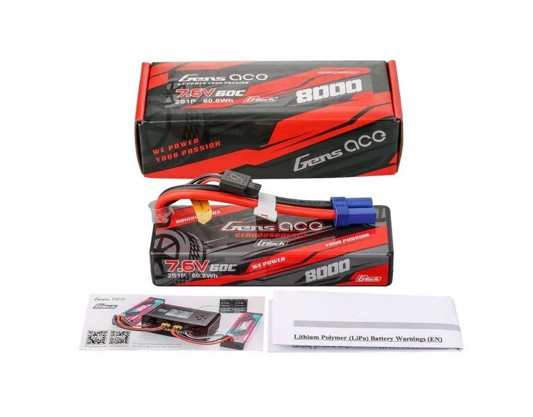 GensAce G-Tech Hard LiPo Akku 2S 7.6V-8000-60C 138x46x24mm 334g (XT60)