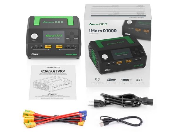 Das kompakte Ladegerät iMars D1000 ist für RC-LiPo-Akkus mit hoher Kapazität ausgelegt und liefert eine Ladeleistung von AC 1000W. Ausgestattet mit der fortschrittlichen G-Tech Smart-Technologie, gewährleistet es einen einfachen, sicheren und effizienten Betrieb.