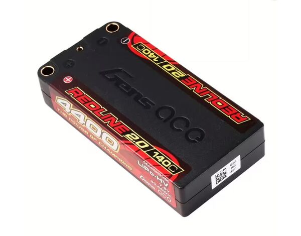Gens Ace Redline 2.0 Series 2S 140C 4400 mAh Hardcase LiPo-Akkupack; mit werkseitig installiertem 5,0-mm-Bullet. Verbraucher vertrauen darauf, dass der Name Gens Ace die Zuverlässigkeit und hohe Leistung liefert, die sie erwarten. Der Gens Ace 140C 2S 4400 mAh 7,6 V HV LiPo-Akkupack hat eine hohe Kapazität und eine hohe Entladerate, die Ihnen die Leistung und Laufzeit bietet, die Sie erwarten.
