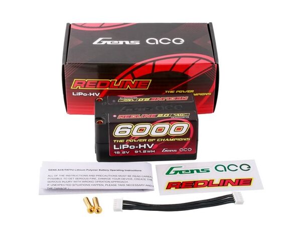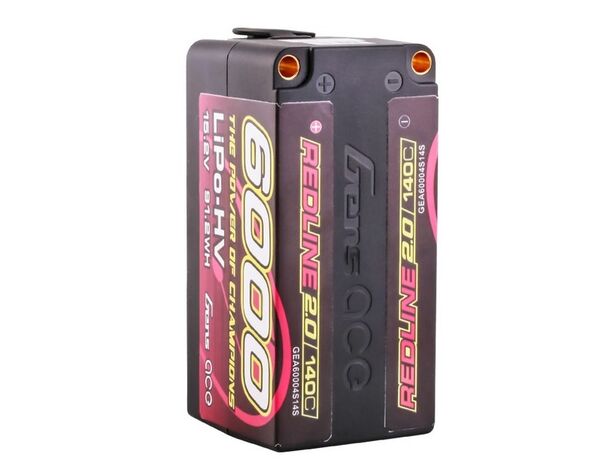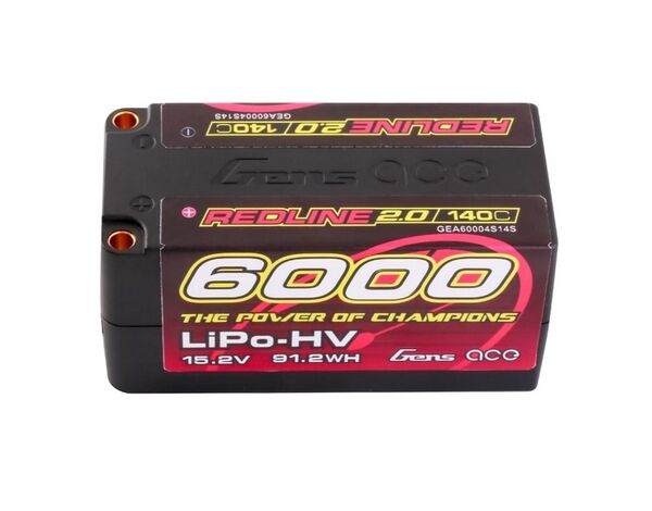 Gens Ace Redline 2.0 Series 4S 140C 6000 mAh Hardcase LiPo-Akkupack; mit werkseitig installiertem 5,0-mm-Bullet. Verbraucher vertrauen darauf, dass der Name Gens Ace die Zuverlässigkeit und hohe Leistung liefert, die sie erwarten. Der Gens Ace 140C 4S 6000 mAh 15,2 V HV LiPo-Akkupack hat eine hohe Kapazität und eine hohe Entladerate, die Ihnen die Leistung und Laufzeit bietet, die Sie erwarten.