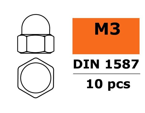 GF0153-001 G-FORCE Hutmutter galvanisierter Stahl M3 - 10 Stk.