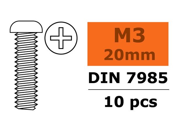 GF0170-012 G-FORCE Linsenschrauben Kreuzschlitz M3X20mm - 10 Stk.