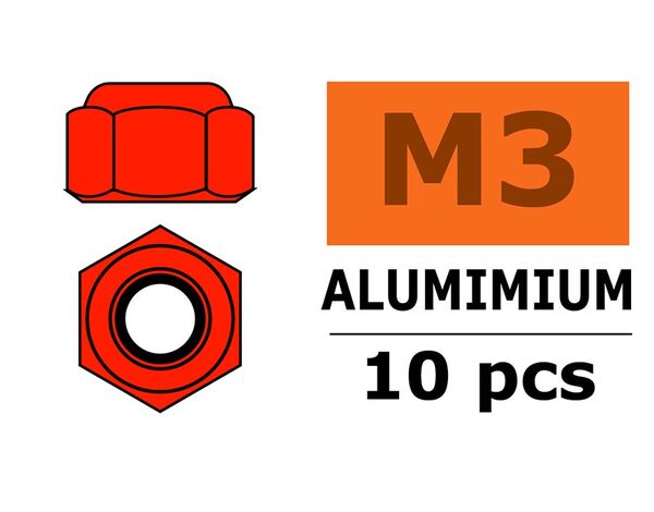 GF0400-035 G-FORCE Sechskantmutter Selbstsichernd Stopmutter rot M3 - 10 Stk.
