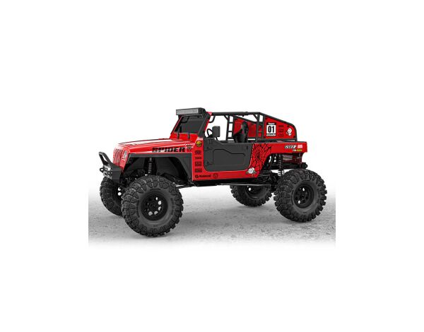 The spider body is a NO TOP style body made of high quality 1.5mm lexan with high strength and details. To add realism details it includes front grille, light bucket, side mirrors, wipers, driver seat, steering wheel, shifter, overfenders, roll cage and a LED light bar so you can tune into a realistic off-road vehicle to matches the concept of off-road adventure. The accessory parts are made of high-strength plastic so they are resistant from the highly impacts, and include decals with realistic details.