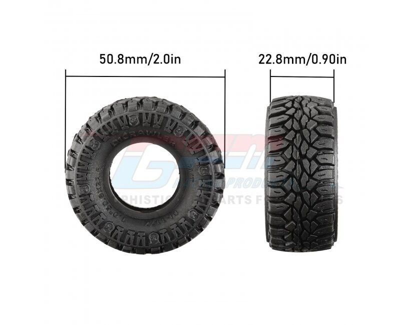 Hohlkammer-Reifen von GPM-Racing für TRAXXAS TRX-4M und AXIAL SCX24. Die Reifen sind innen verstärkt und sind dadurch reißfester und langlebiger. Jedes Reifenprofil ist in zwei unterschiedlichen Gummimischungen erhältlich, High-Grip für extra viel Griff und Normal-Grip für längere Lebensdauer.