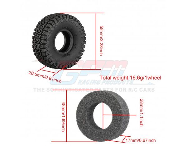 GPM Traxxas TRX4M 1.0 HighGrip-Gummi-Reifen mit Einlagen 53x20,5mm